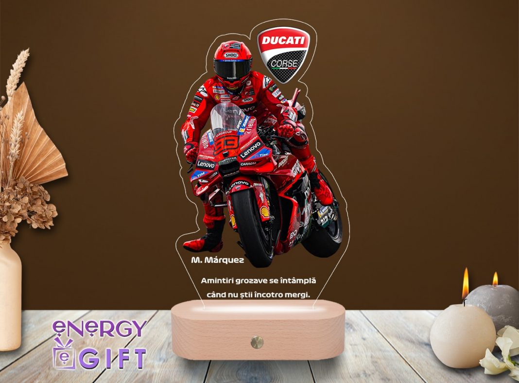 Un exemplu clar este această Lampă LED 3D Marc Márquez MotoGP. Ea îmbină tehnologia cu pasiunea și transformă dragostea pentru sport într-un obiect prezent în casă. Este genul de cadou personalizat care se aprinde odată cu emoțiile unei curse și care rămâne acolo și după ce motoarele s-au oprit. Spre deosebire de alte daruri obișnuite, o astfel de surpriză adaugă autenticitate și vorbește direct despre cine este cel care o primește.